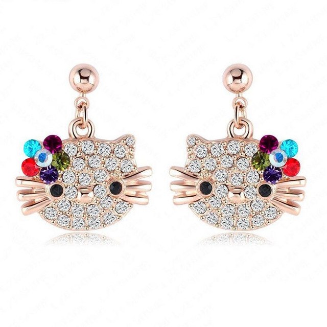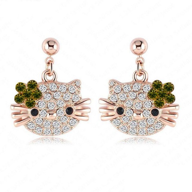Material: Austrian Crystal Cat Flower Earrings