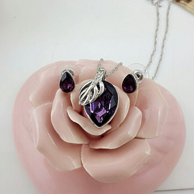 2015 brand hotsales wedding bridal women White leaf drop pendant necklace earrings fashion jewelry sets 029+308